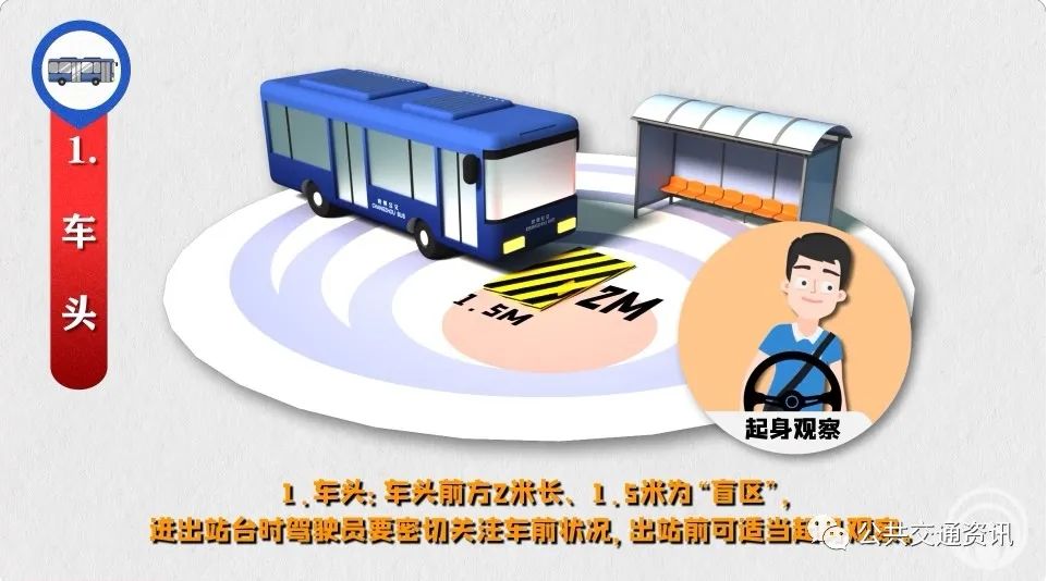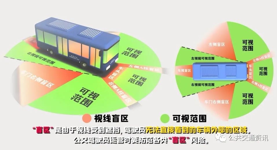 “盲區(qū)”是由于視線受到遮擋,駕駛員無法直接看到的車輛外部的區(qū)域。公交駕駛員運(yùn)營時(shí)要防范各類“盲區(qū)”風(fēng)險(xiǎn)。