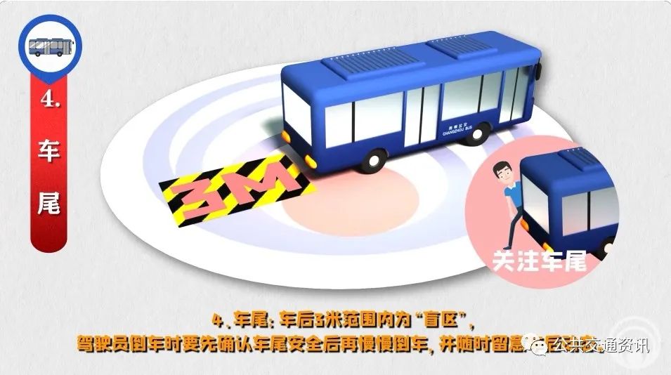 4、車尾:車后3米范圍內(nèi)為“盲區(qū)”,駕駛員倒車時(shí)要先確認(rèn)車尾安全后再慢慢倒車,并隨時(shí)留意車后動(dòng)態(tài)。