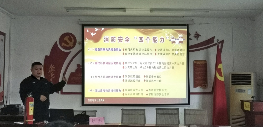 培訓(xùn)中,賴(lài)亮教官首先通過(guò)播放火災(zāi)警示視頻,讓干部職工直觀(guān)地認(rèn)識(shí)火災(zāi)危害,喚起大家對(duì)消防安全的高度重視。隨后賴(lài)亮教官結(jié)合多起典型事故案例進(jìn)行消防安全知識(shí)授課,重點(diǎn)講解了火災(zāi)的特性與預(yù)防、消防安全四個(gè)能力建設(shè)、火災(zāi)應(yīng)急處置等方面內(nèi)容,同時(shí)現(xiàn)場(chǎng)對(duì)各類(lèi)消防器材的使用方法及動(dòng)作要領(lǐng)進(jìn)行實(shí)操演示。